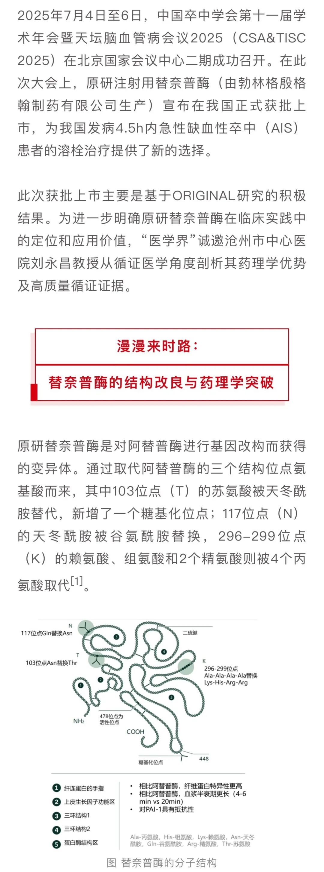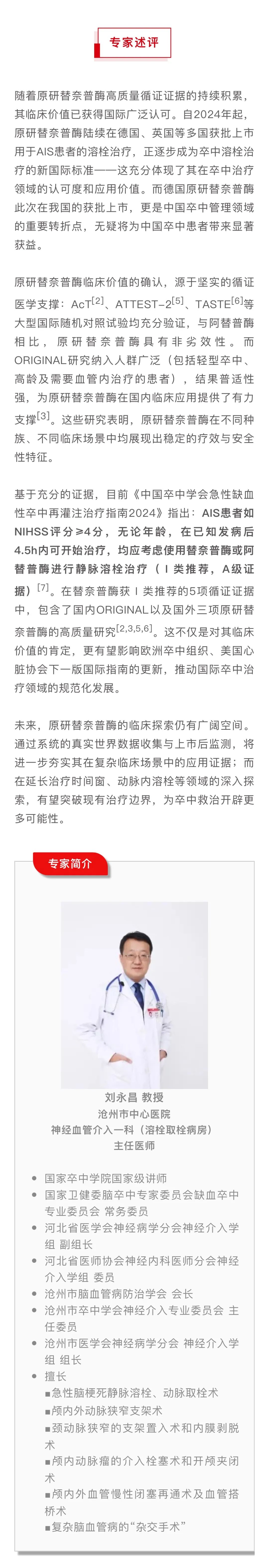 1.在CSA&TISC 2025上,勃林格殷格翰宣布原研替奈普酶于我国获批上市,为发病4.5h内AIS患者溶栓治疗提供新选择,此次获批是基于ORIGINAL研究的积极结果。