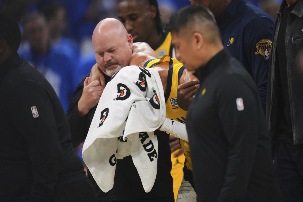 这轮系列赛的前几场比赛,哈利伯顿就遭遇了右小腿拉伤,但他最终选择带伤出战,或许正是这个决定给第七场的意外埋下了伏笔。在拼了大半年带着步行者重返总决赛之后,以这样的方式告别赛季,对于哈利伯顿来说,内心的失望、沮丧和不甘都写在了他痛苦的表情里。