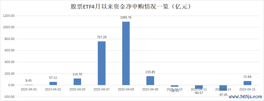 银河证券基金研究中心数据显示,4月16日,全市场股票ETF(含跨境ETF)资金净流入达到72.96亿元,这是股票ETF市场时隔3个工作日再现资金净流入。