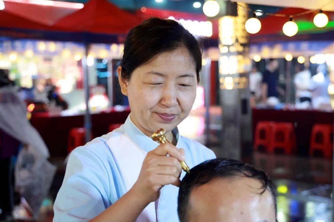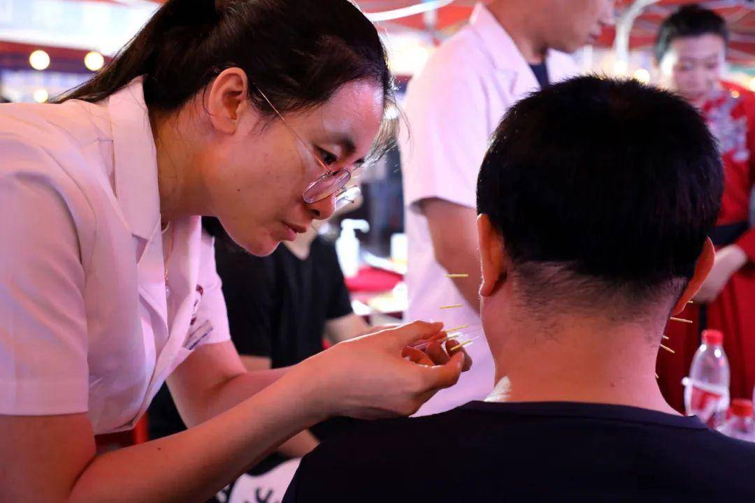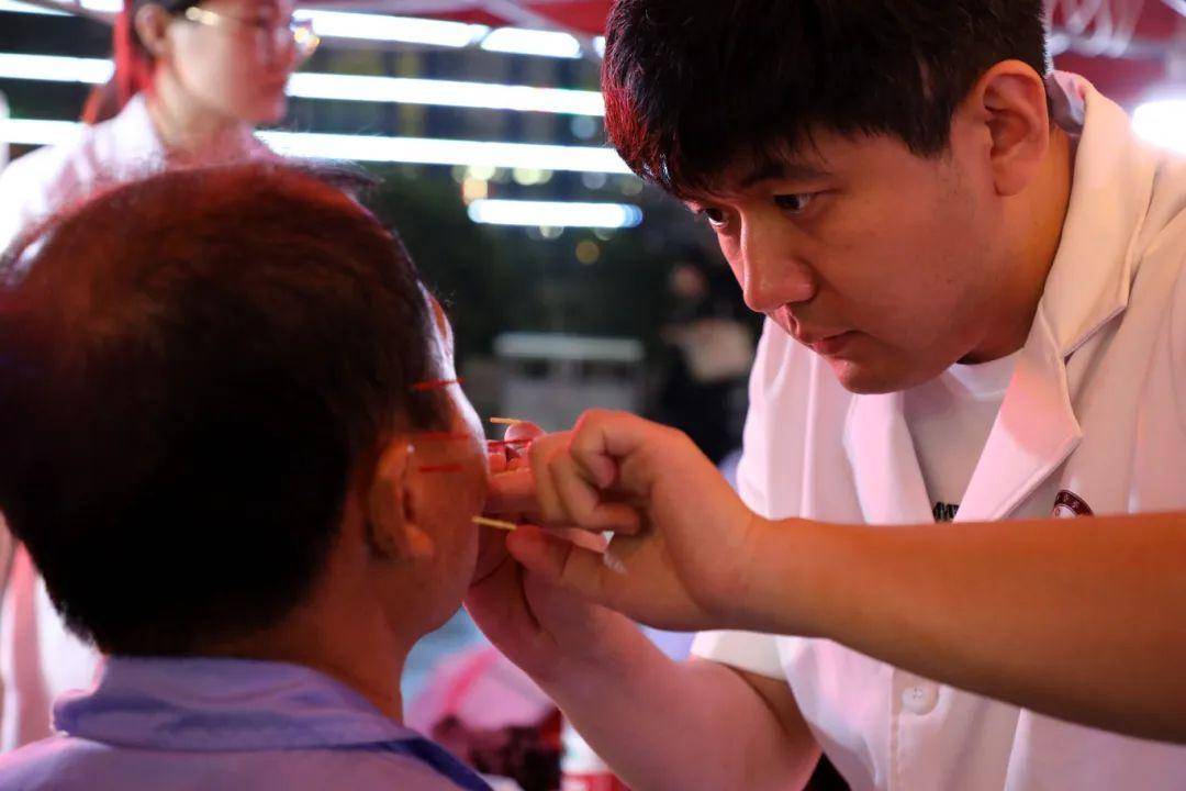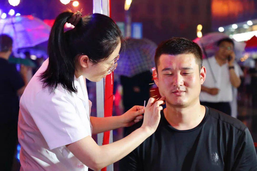 添“味”夜生活,中医药文化惠民夜市“开市”华灯初上,药香弥漫,一场中医药文化“养生局”已经拉开帷幕。四十余个主题摊位涵盖吃、喝、玩、诊、疗、学,160余名医务人员化身“夜市摊主”,为广大市民提供优质、多样、实用的中医药健康服务。在专家义诊区,多位省级、市级名老中医凝神把脉,辨证开方,为居民“量身定制”养生方案。中医适宜技术体验区内,杵针、核桃灸等传统技艺吸引市民亲身体验。药膳品尝区里,清香祛暑的中药茶饮、醇厚香浓的膏方让群众大饱口福、吃出健康。趣味游戏区最为火爆,DIY中药香囊吸引群众纷纷动手体验,在欢声笑语中了解中药知识。在政策宣讲区,通过发放明白纸、展板宣传信用就医及中医药政策,现场解答群众疑问……中医药文化凭借“夜市”这一亲民形式焕发出新的生命力,成为百姓生活中的“健康国潮”新风尚。现场把脉问诊